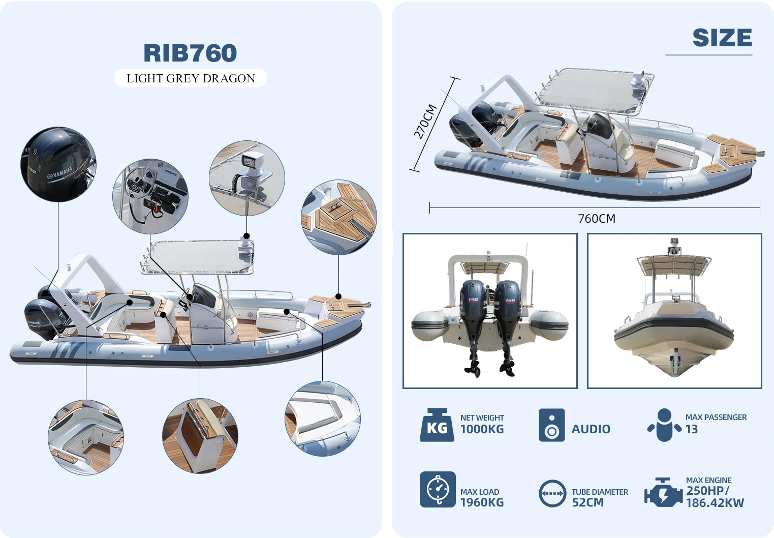 เกี่ยวกับเรือซี่โครง FRP 760 คำถามและข้อสงสัยเพิ่มเติม โปรดติดต่อเราทางอีเมลหรือส่งข้อความถึงเราโดยตรงทางหมายเลข Whatsapp +8615666791560